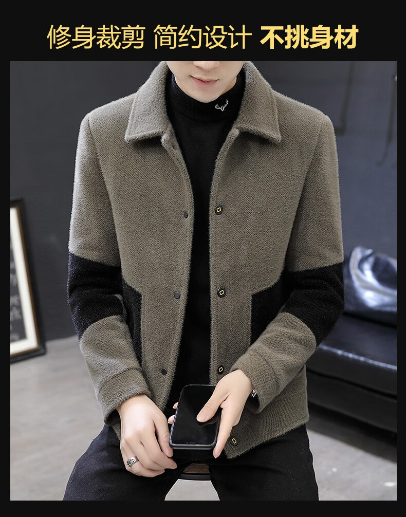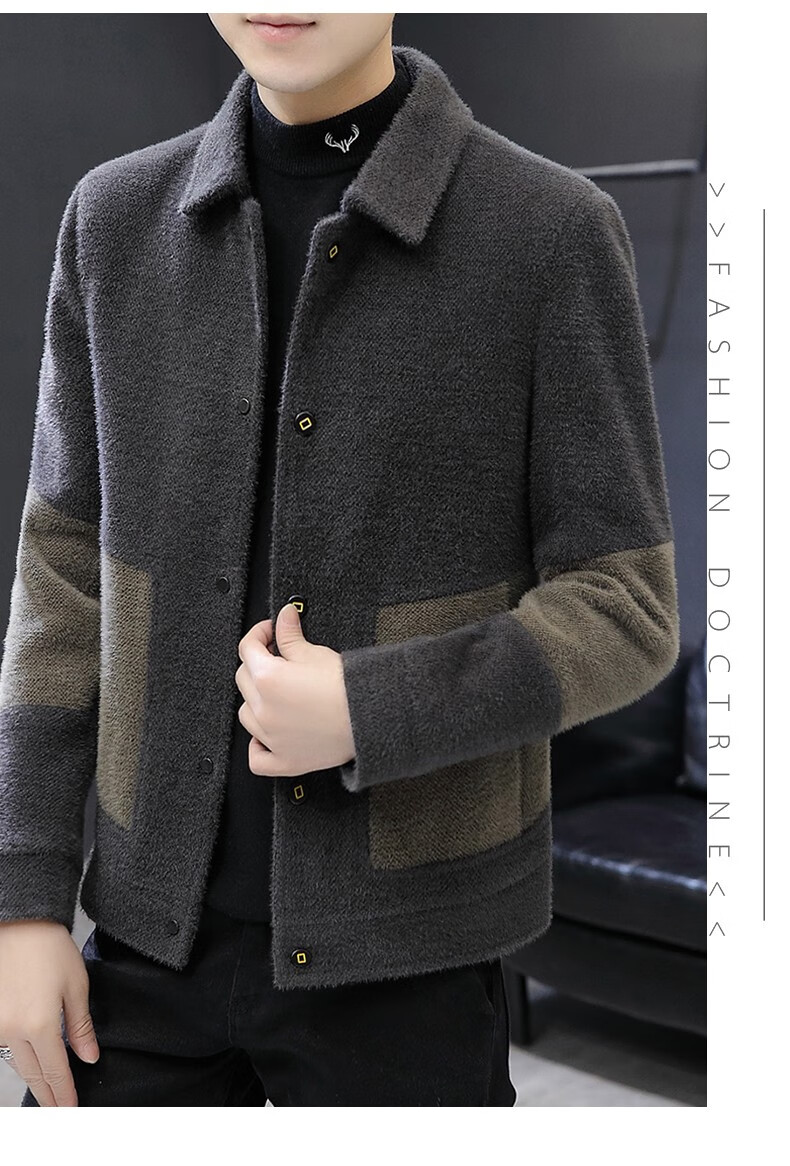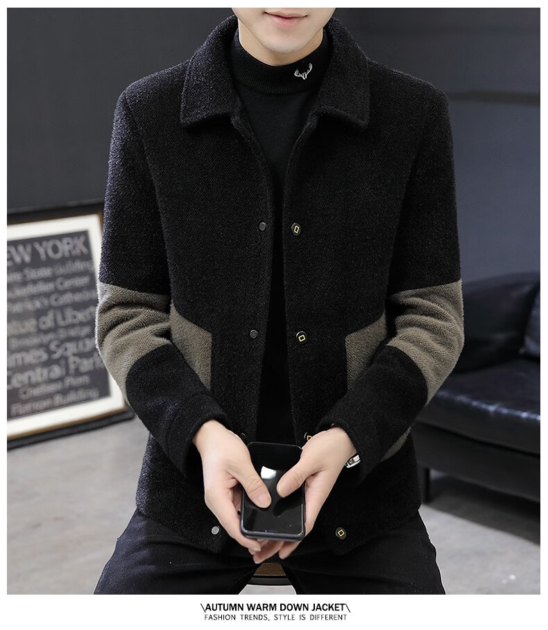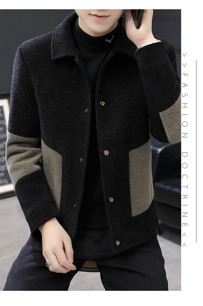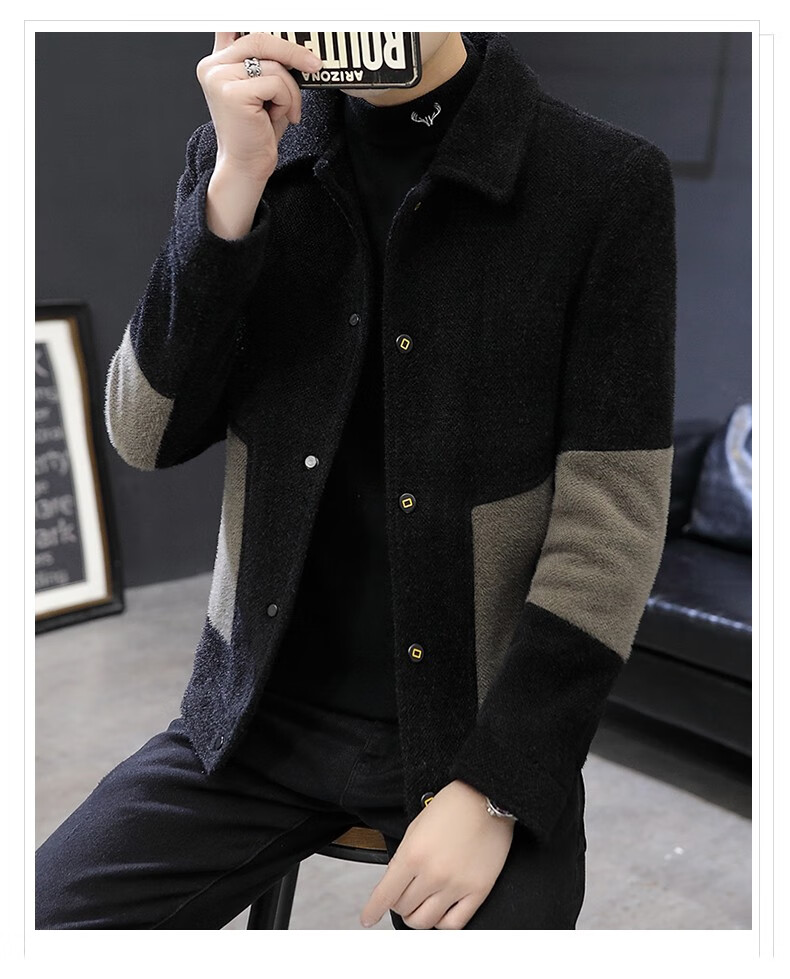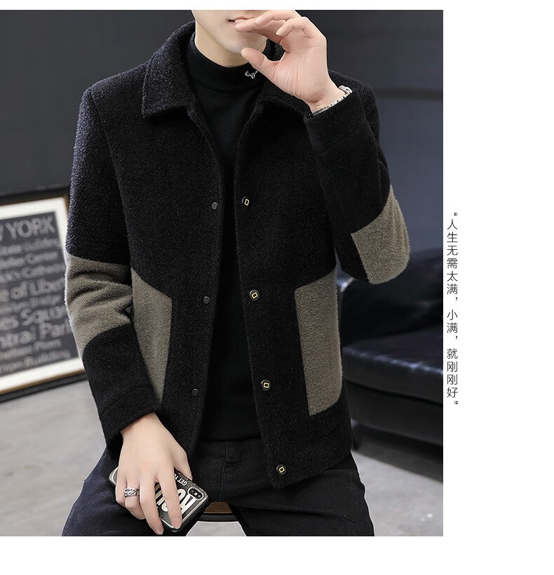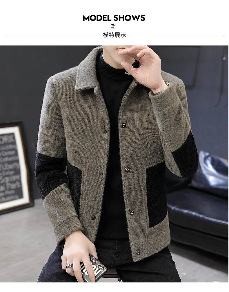 花花公子新款秋冬季呢子外套男潮流韩版商务休闲秋季短款夹克男士毛呢大衣服男装冬装加厚款外衣 深灰色 XL/135斤下