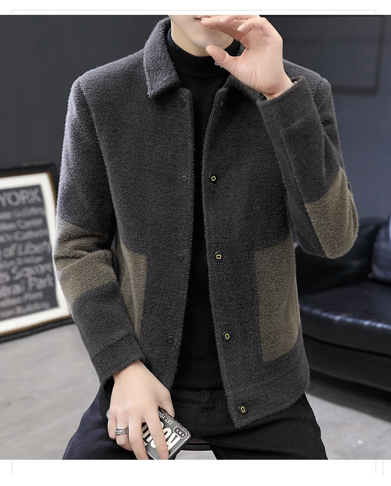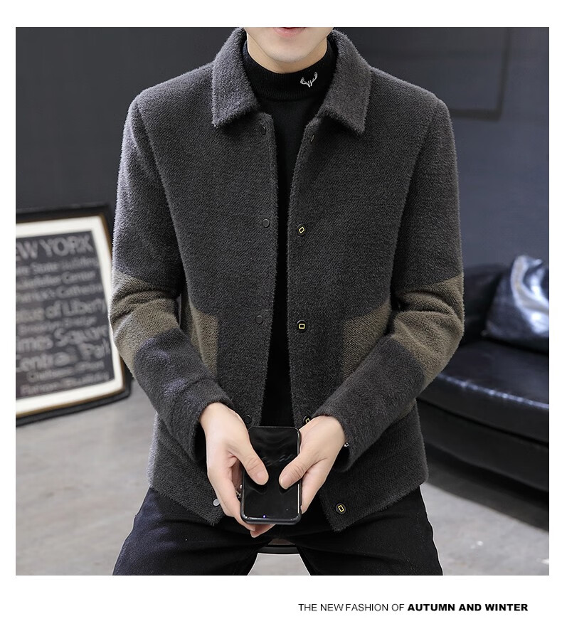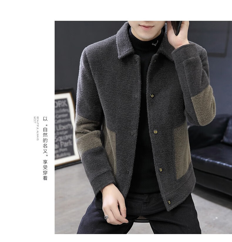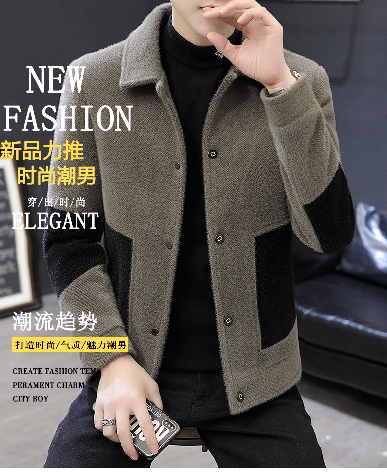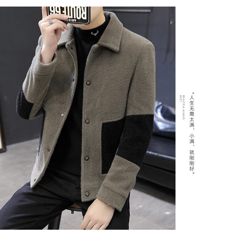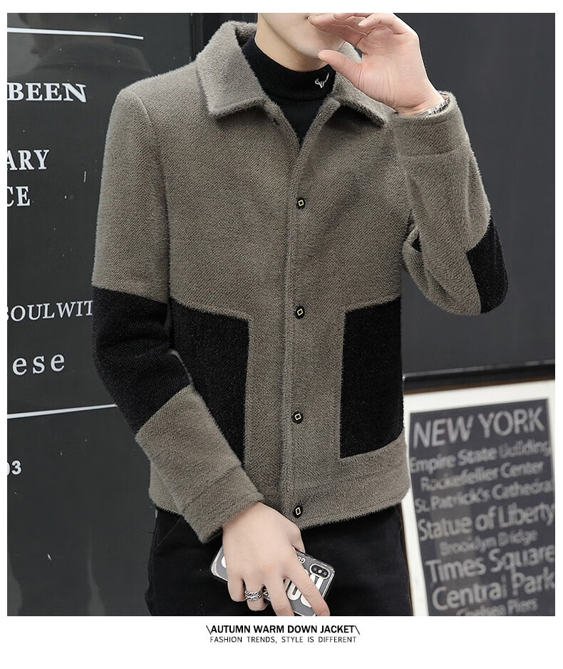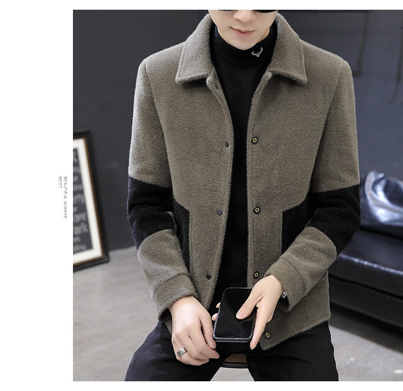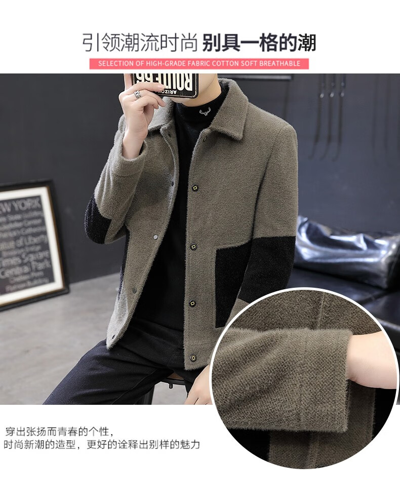 花花公子新款秋冬季呢子外套男潮流韩版商务休闲秋季短款夹克男士毛呢大衣服男装冬装加厚款外衣 深灰色 XL/135斤下