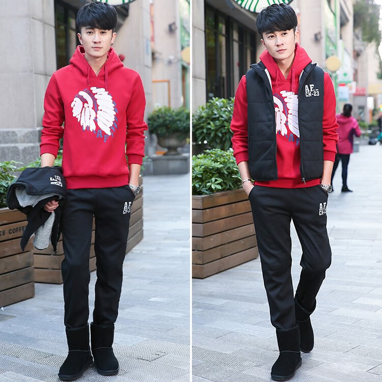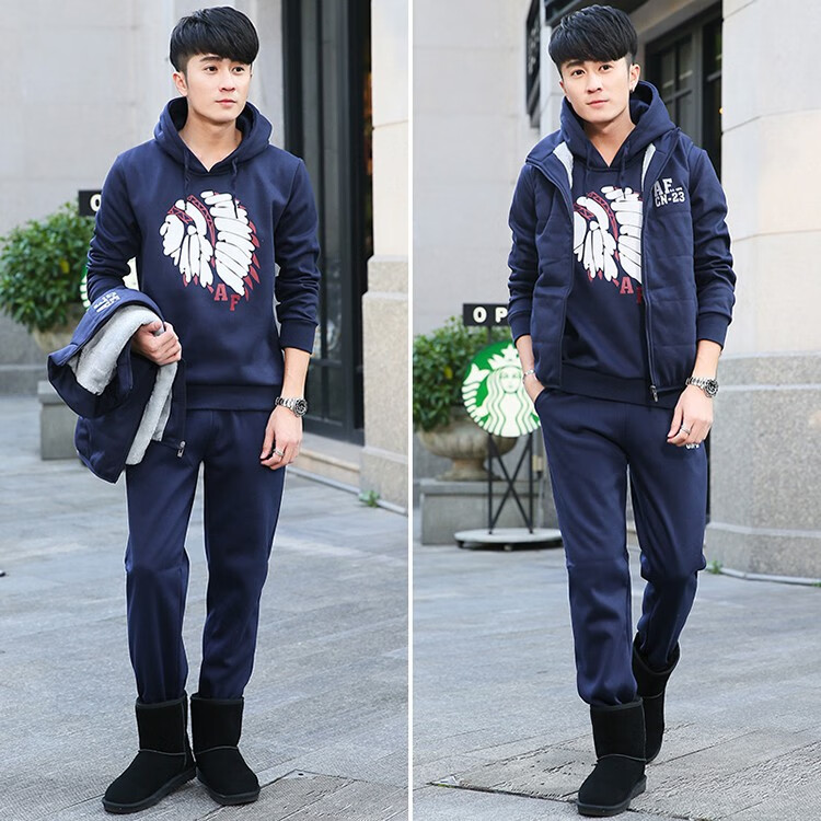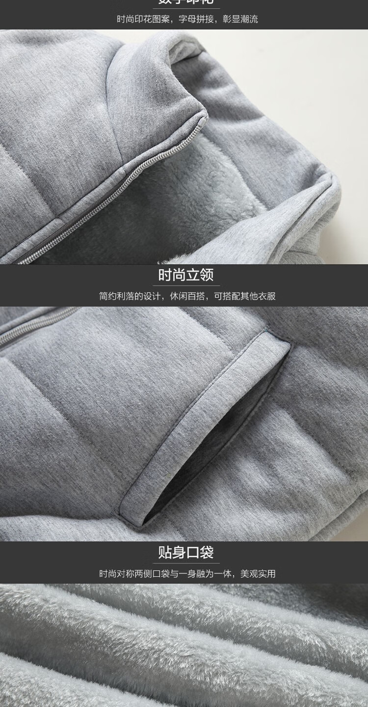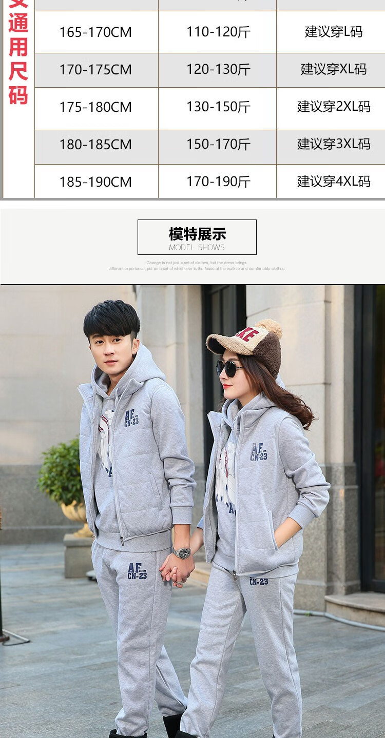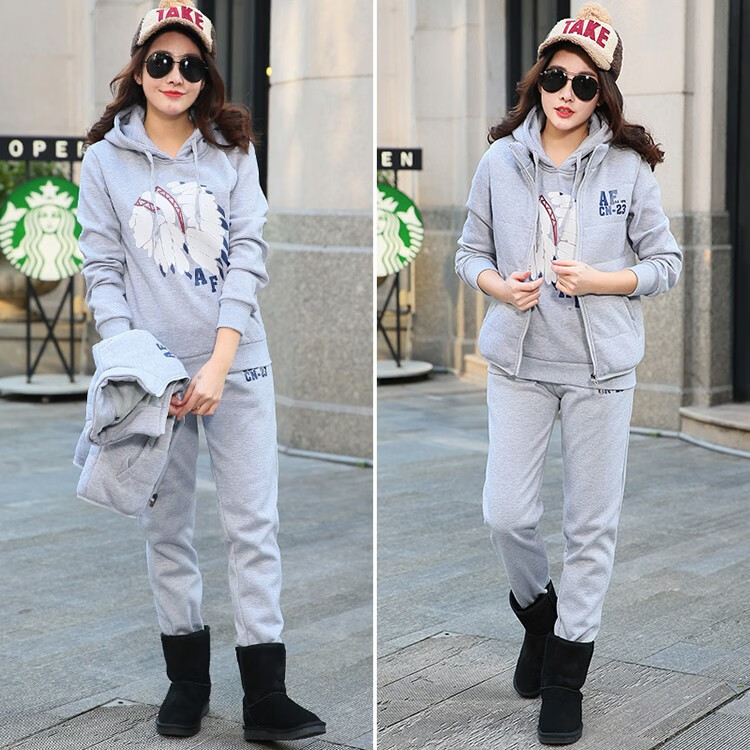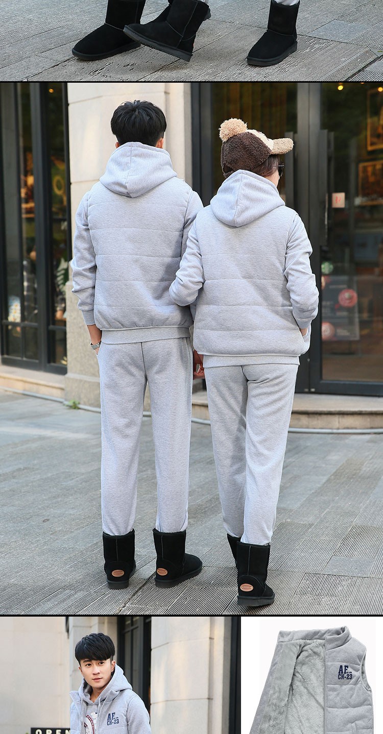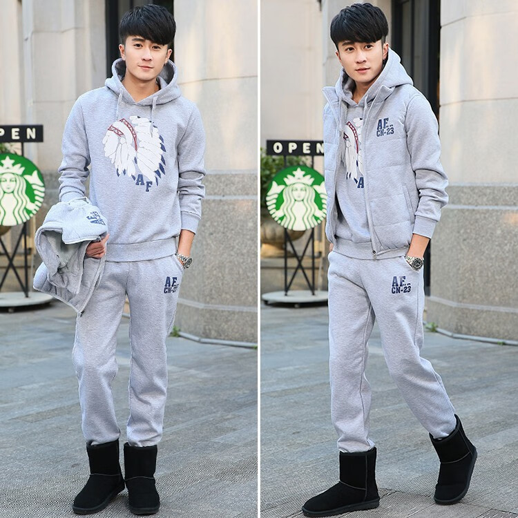 罗威凯狮 运动休闲套装男春秋季一套搭配帅气卫衣两三件套带帽冬季夹克外套潮衣服男装加绒加厚服饰棉袄子 D121灰色 三件装 XL