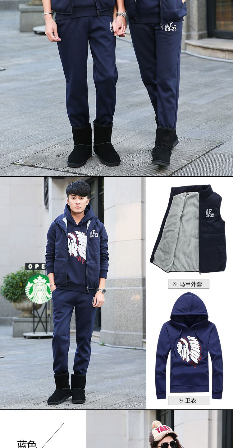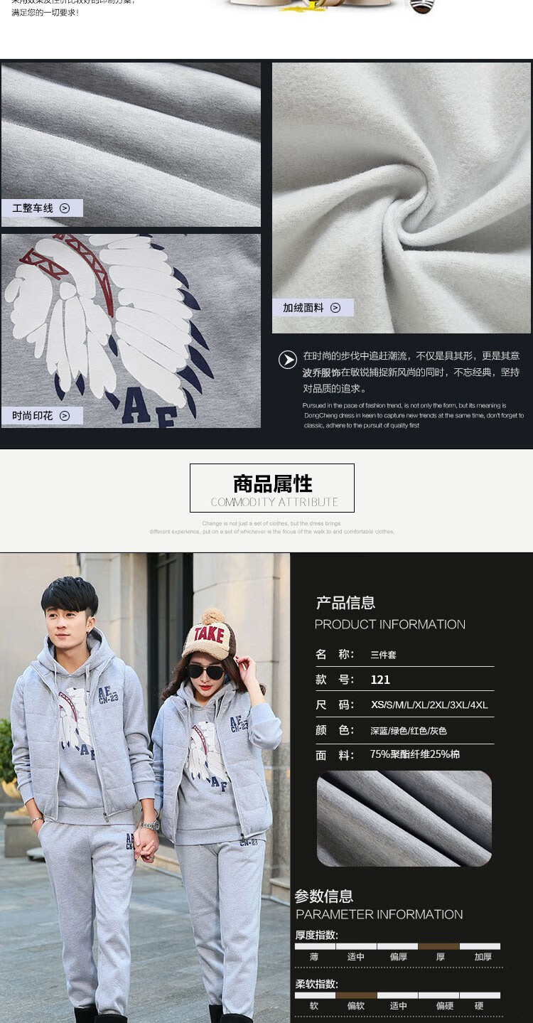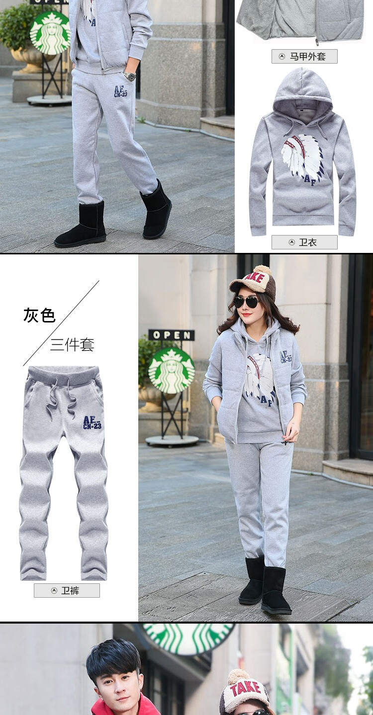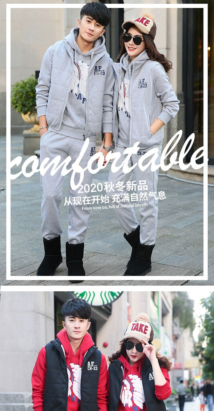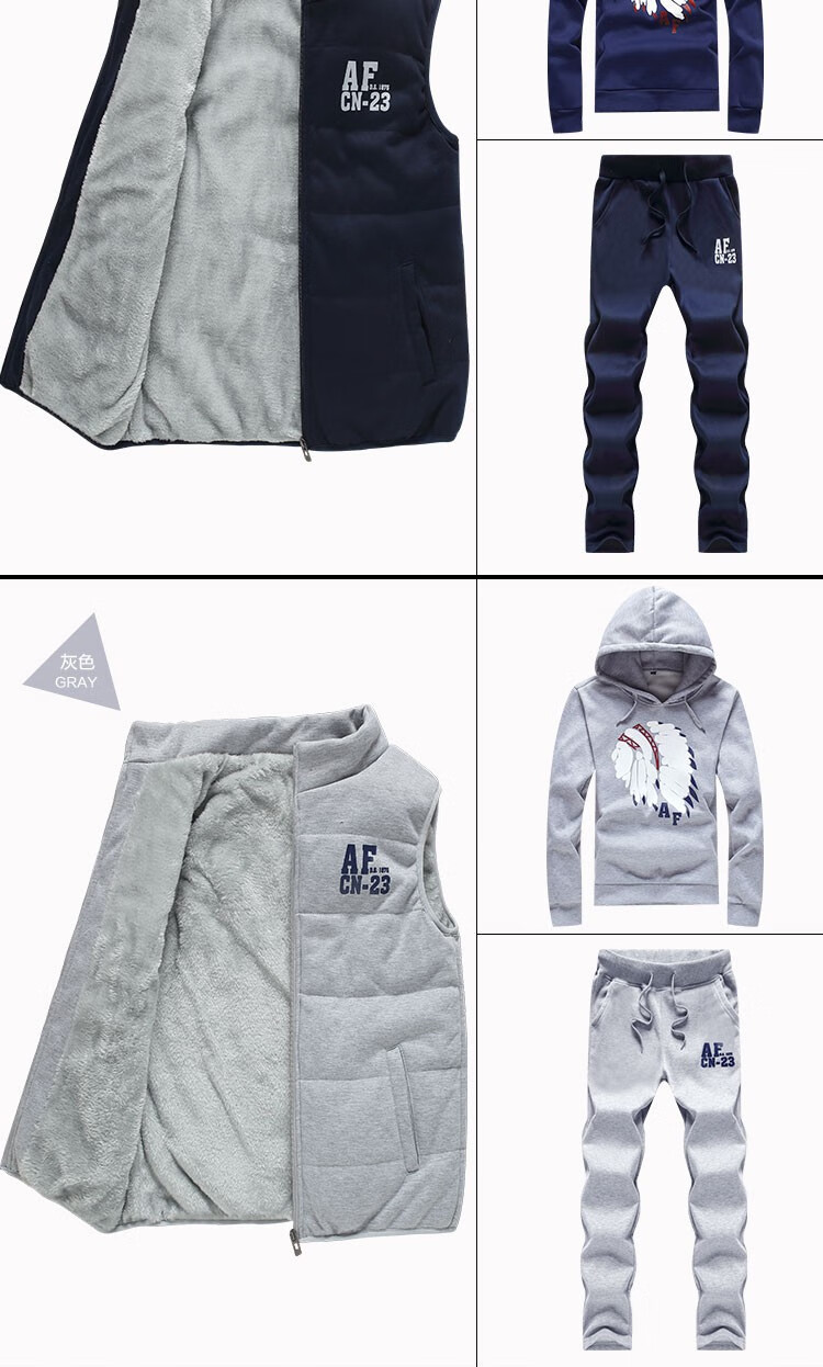 罗威凯狮 运动休闲套装男春秋季一套搭配帅气卫衣两三件套带帽冬季夹克外套潮衣服男装加绒加厚服饰棉袄子 D121灰色 三件装 XL