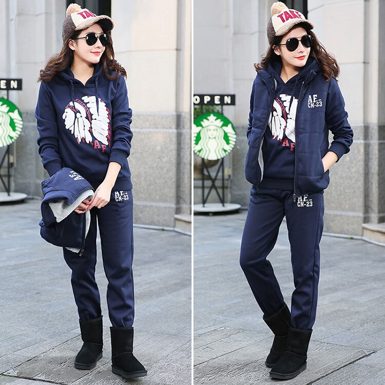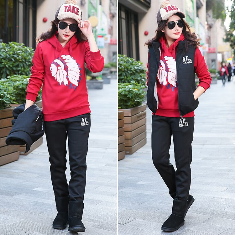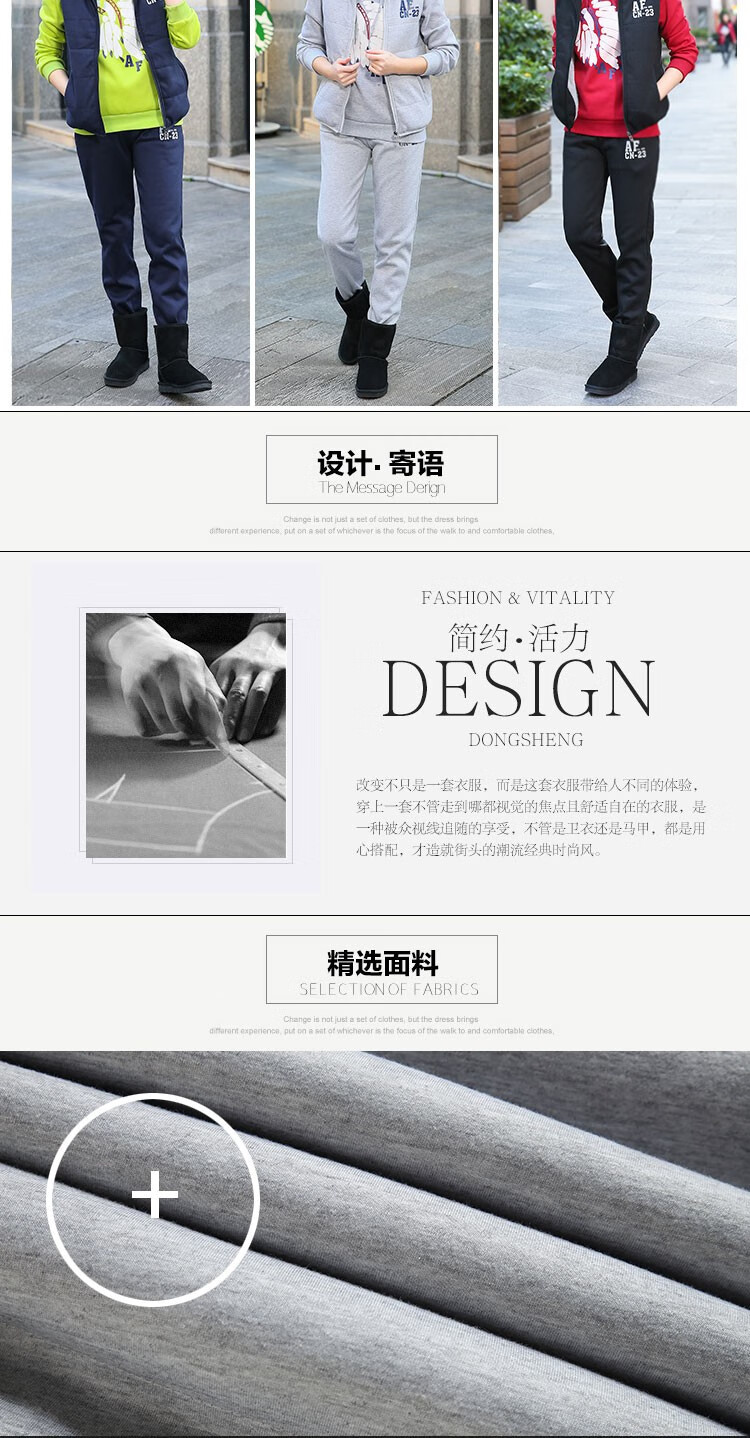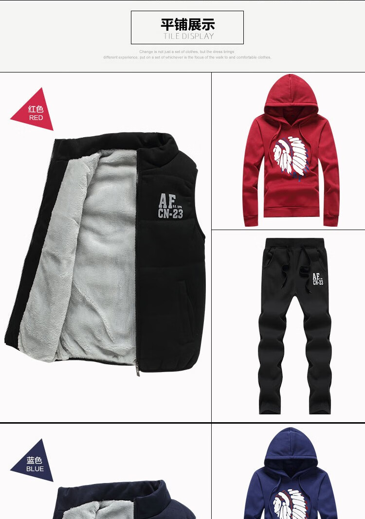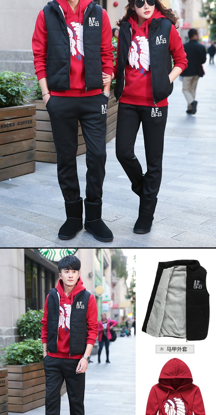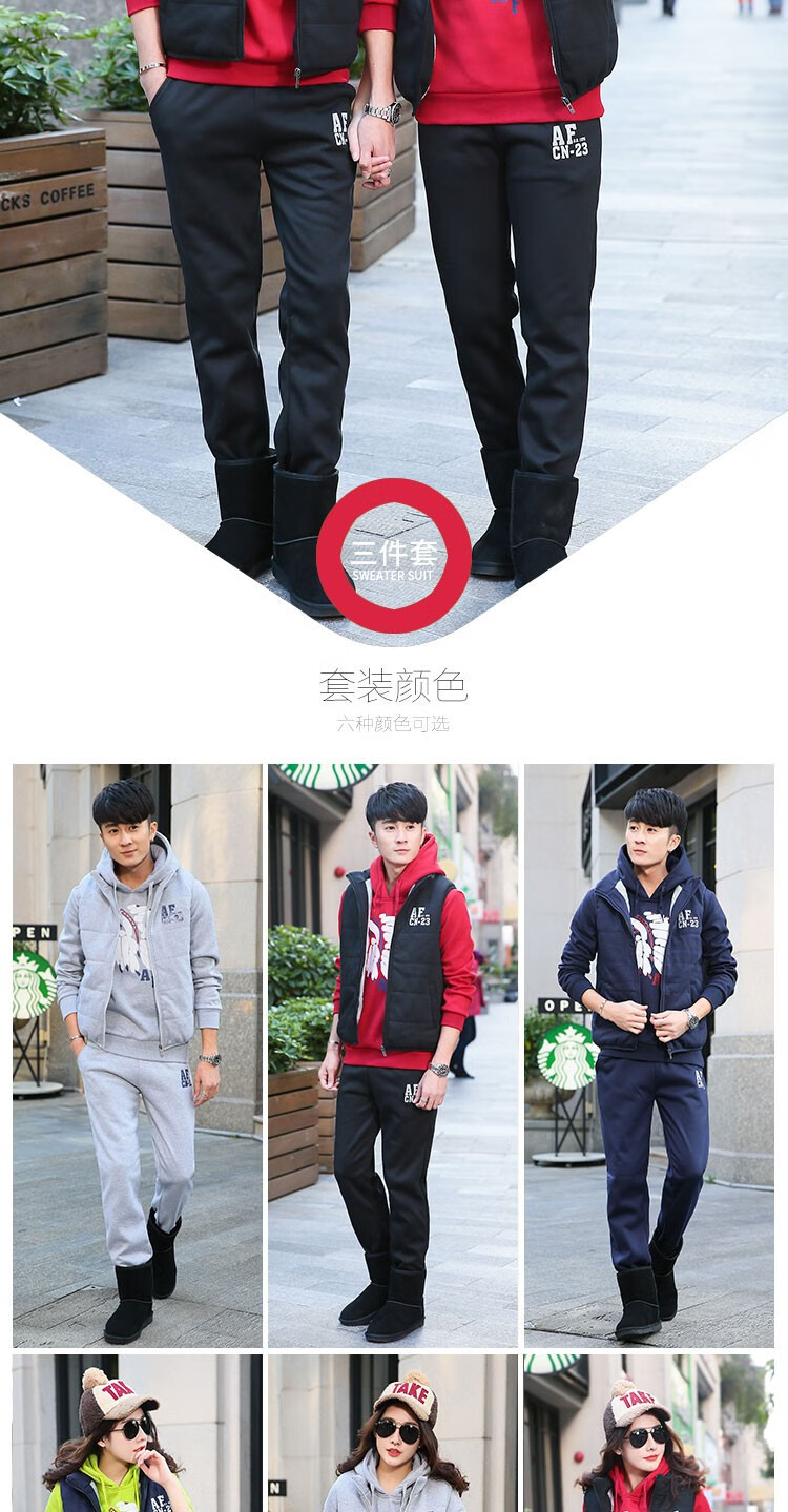 罗威凯狮 运动休闲套装男春秋季一套搭配帅气卫衣两三件套带帽冬季夹克外套潮衣服男装加绒加厚服饰棉袄子 D121灰色 三件装 XL
