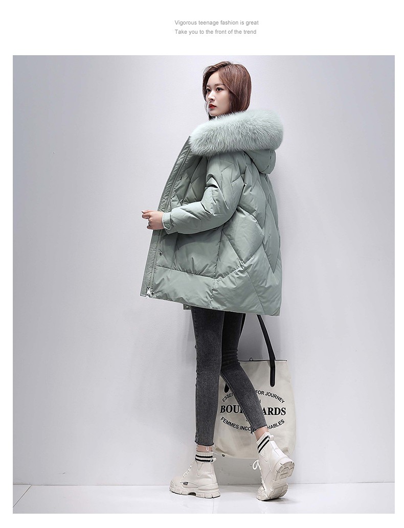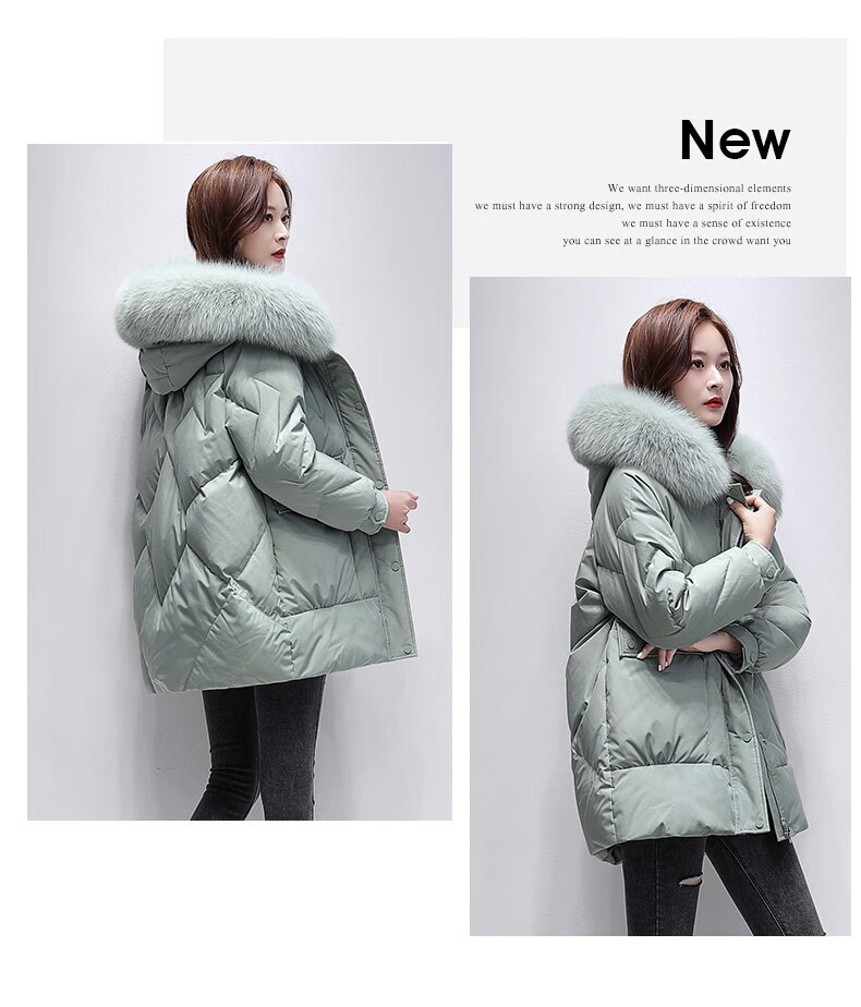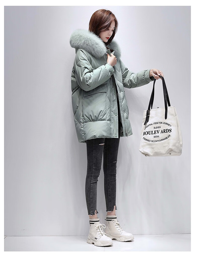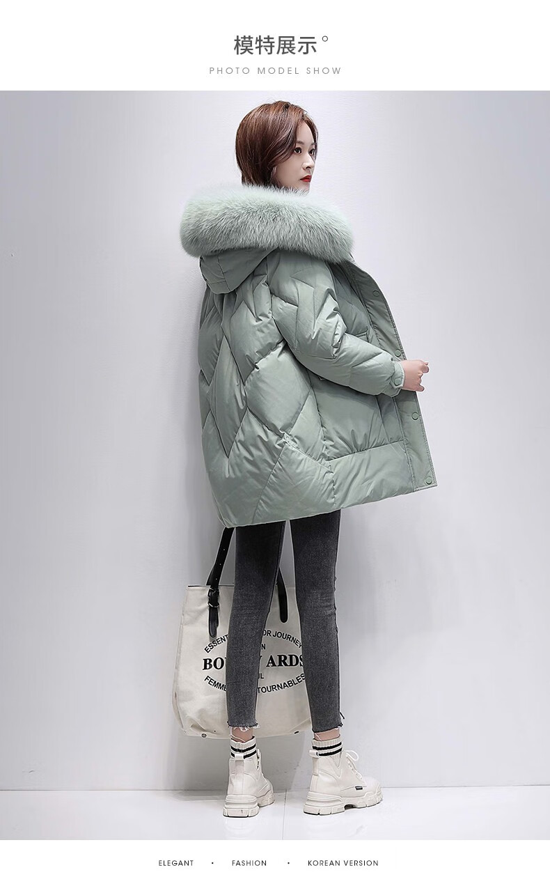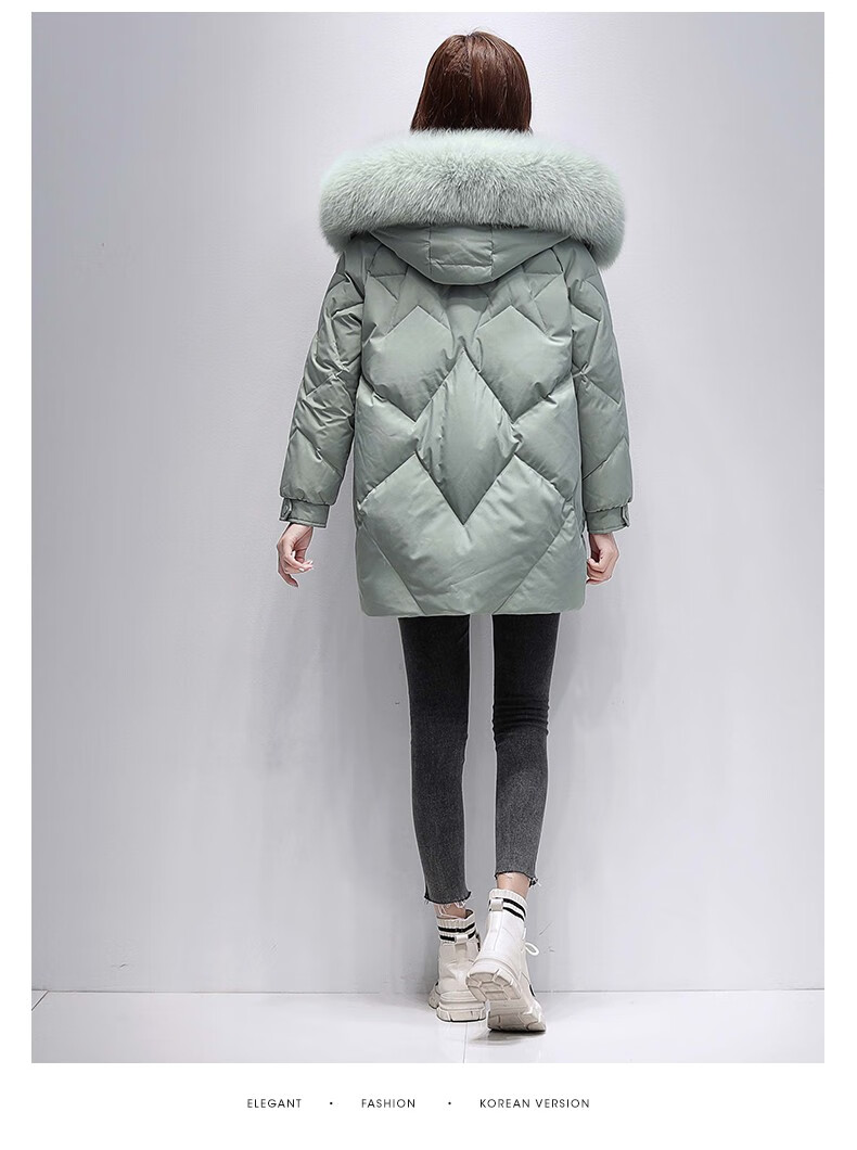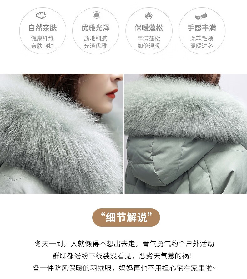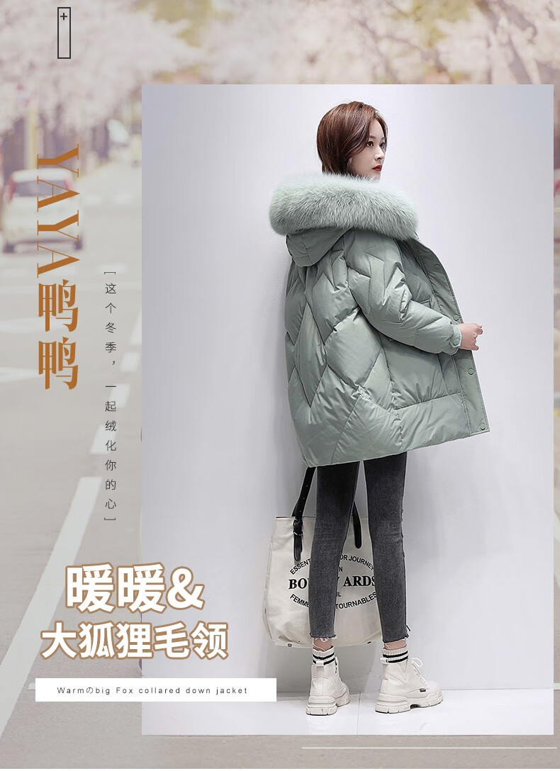 鸭鸭2024冬季厚款羽绒服女中长款韩版修身时尚学生小个子白鸭绒派克服女士加厚羽绒服过膝真大毛领 绿色100 M