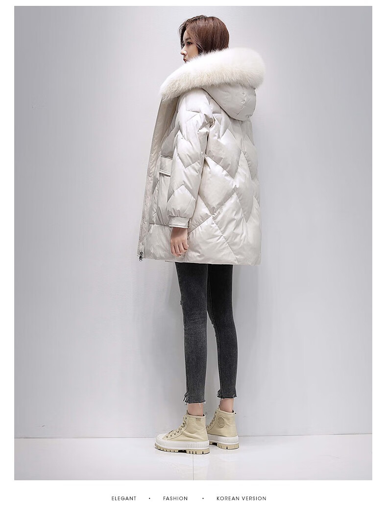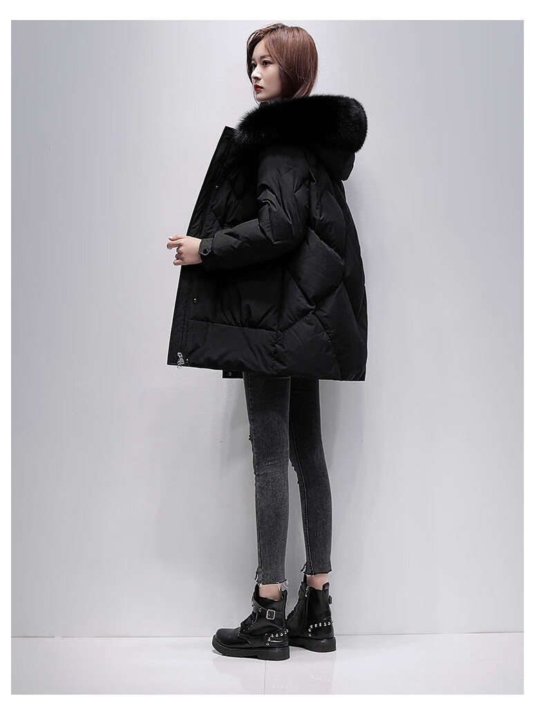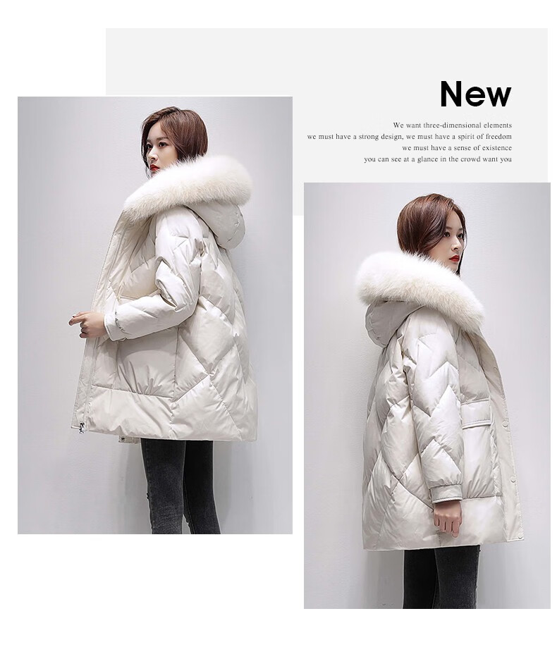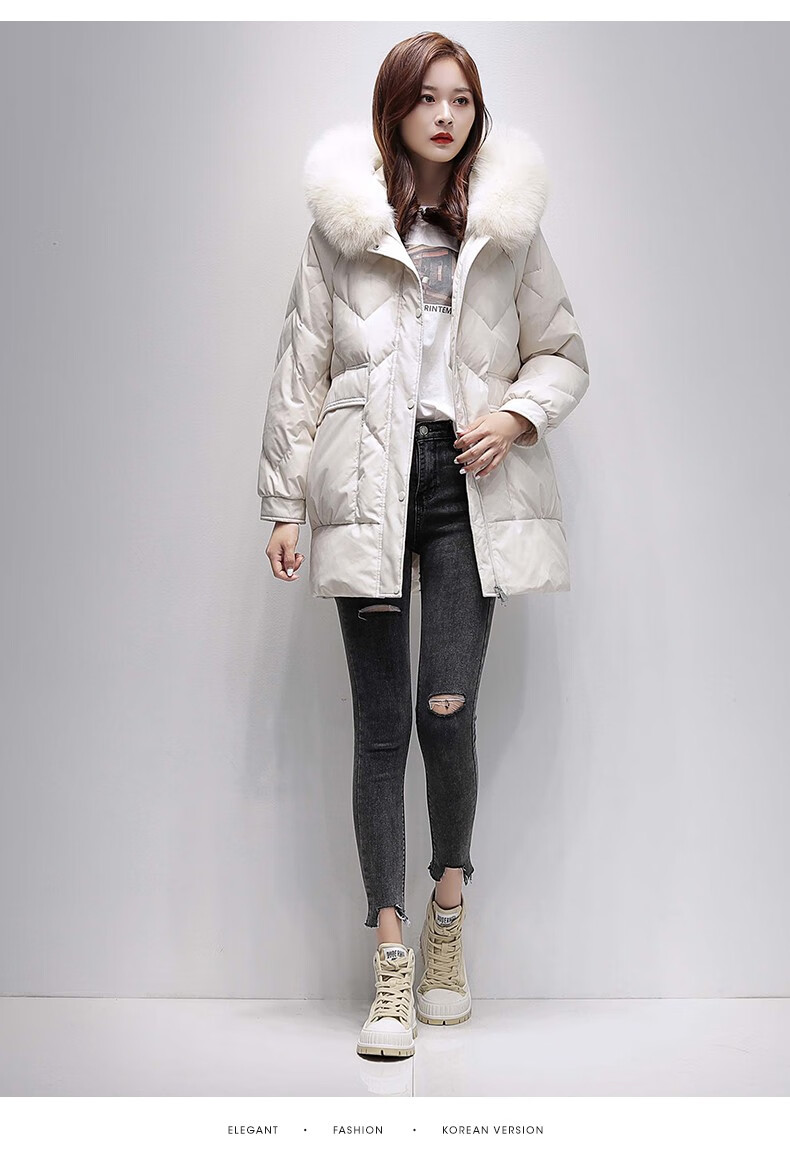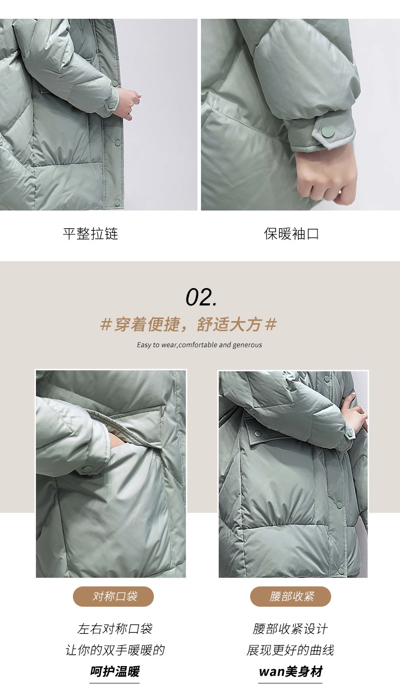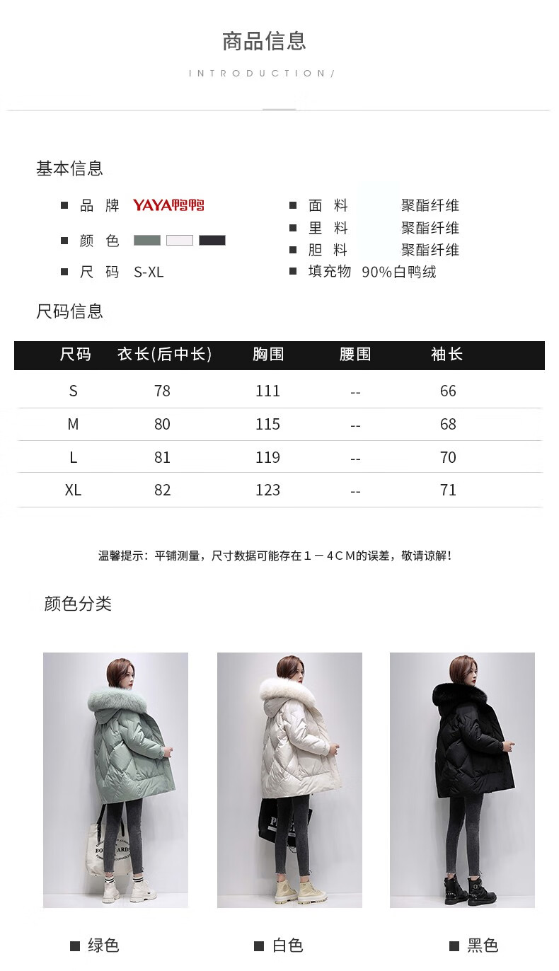 鸭鸭2024冬季厚款羽绒服女中长款韩版修身时尚学生小个子白鸭绒派克服女士加厚羽绒服过膝真大毛领 绿色100 M