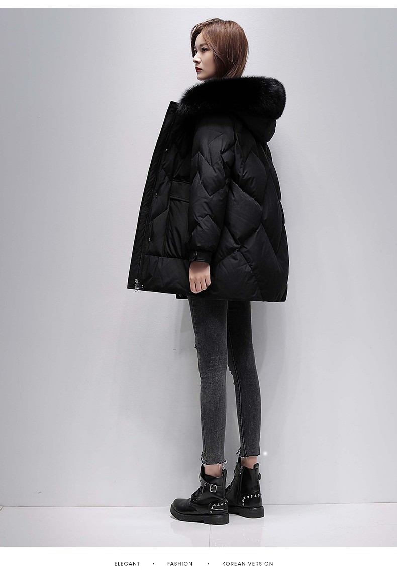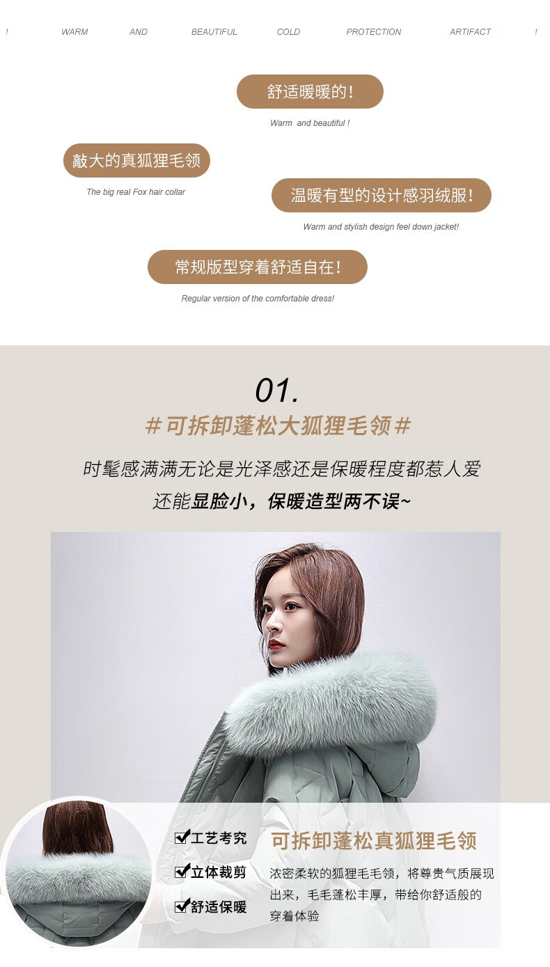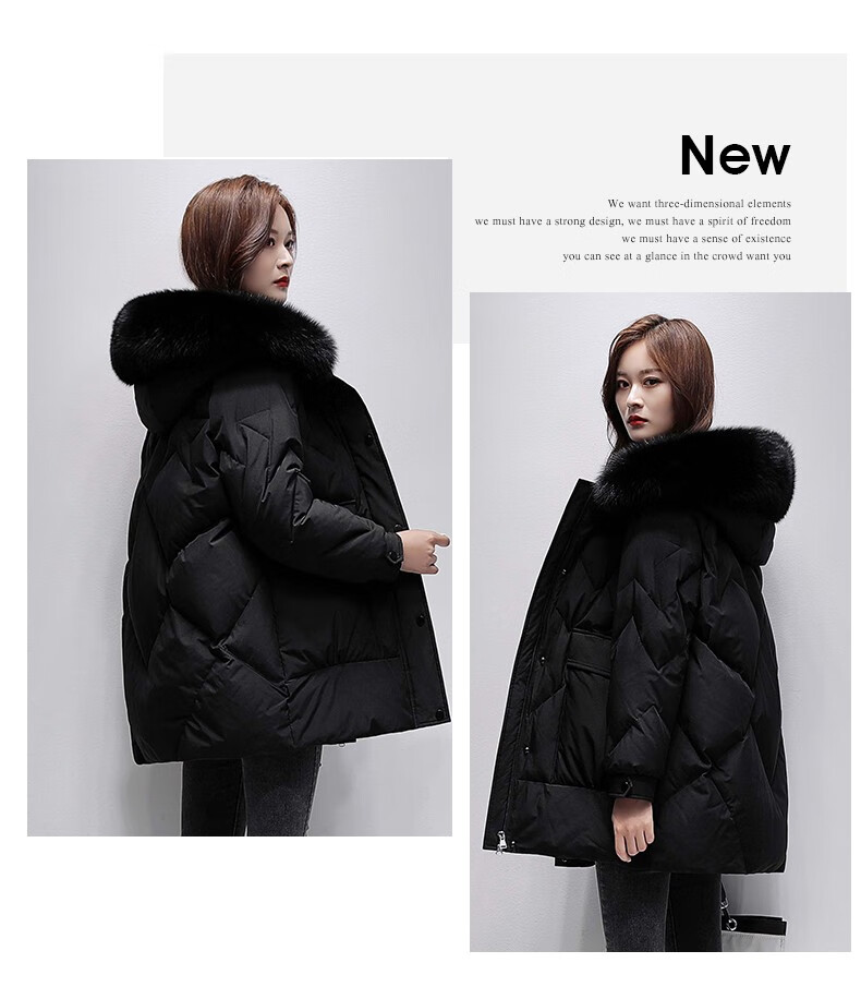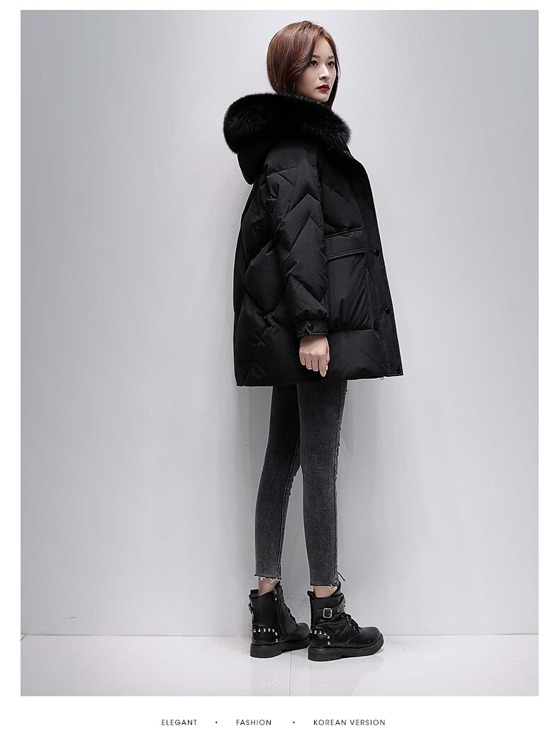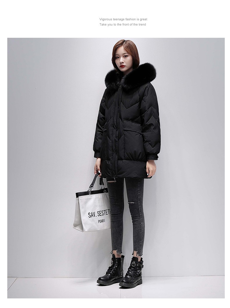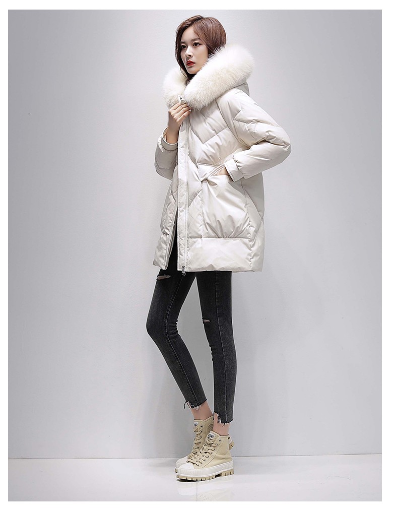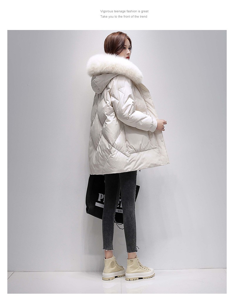 鸭鸭2024冬季厚款羽绒服女中长款韩版修身时尚学生小个子白鸭绒派克服女士加厚羽绒服过膝真大毛领 绿色100 M